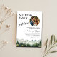 An elegant Wedding Invitation with watercolor mountains and pine trees that you can customise with your details.
