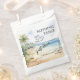 An elegant Wedding design with watercolor beach and palm trees that you can customise with your details.