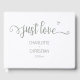 NOTHING FANCY JUST LOVE wedding guest book. Personalised guestbooks from Ricaso .. add your own details to tis stunning book for your guest to leave messages to the happy couple. available in sage green and white modern design. part of the Nothing fancy just love sage green wedding suite