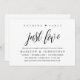 Announce your happily ever after in style with our modern script design wedding post-wedding (Nothing Fancy, Just Love) elopement brunch invitation card (Black and white theme). Our Happily Ever After Brunch Celebration Invitation card is ideal for couples who have decided to elope and want to host a party to celebrate their union. With its sophisticated yet playful design, this invitation is sure to set the tone for an unforgettable event. The invitation card features a minimalist design, adding a touch of timeless elegance to your celebration. Designed by TeeshaDerrick