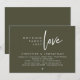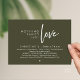 Announce and share your happily ever after in style with our modern olive green theme design (Nothing Fancy Just Love) wedding elopement celebration invitation card. It is ideal for couples who have decided to celebrate their best day. With its sophisticated yet playful design, this invitation is sure to set the tone for an unforgettable event. The invitation card features a modern and minimalist script design theme, adding a touch of timeless elegance to your celebration. Designed by TeeshaDerrick