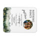 An elegant Wedding Save the Date magnet with watercolor mountains and pine trees and 1 special photo that you can customise with your details.