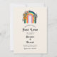 Casual wedding invitation with 70s arch rainbow and coloured daisies. Great retro style font makes it even better! This stylish invite is sure to stand out! Wonderful and colourful it is perfect for a hippy laid back, casual wedding vibe. See coordinating items in our shop.