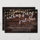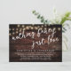 Announce your happily ever after in style (Nothing Fancy, Just Love) with our modern rustic dark wood, cottage string lights design wedding elopement celebration invitation card. Our Happily Ever After Party Celebration Invitation card is ideal for couples who have decided to elope and want to host a party to celebrate their union. With its sophisticated yet playful design, this invitation is sure to set the tone for an unforgettable event. The invitation card features a minimalist rustic elegant design scheme, adding a touch of timeless elegance to your celebration. Designed by TeeshaDerrick