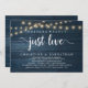 Mark the beginning of your forever with rustic elegance using our cottage string lights navy blue wood background themed, wedding elopement celebration invitation card, "nothing fancy just love". Perfect for couples extending their joyous occasion, this invitation exudes sophistication with a hint of playfulness, setting the stage for a memorable event. Adorned with a timeless modern script design theme, it adds a touch of refined charm to your festivities. Crafted by TeeshaDerrick, this invitation promises to beautifully capture your love story.