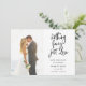 Save the Date announcement featuring "Nothing fancy just love" in a fun script. Announce to your friends and family that you are getting married! Customise with your information and photo.
