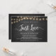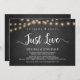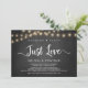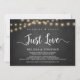 Beautiful Nothing Fancy, Just Love, Wedding Elopement Announcement / Invitation card, in Rustic farm chalkboard, String Lights design. This is perfect for your wedding reception and post-wedding celebration party. Add your details in matching font / lettering.