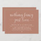 Mark the beginning of your forever with elegance using our contemporary beautiful earthy terracotta brown themed wedding elopement celebration invitation card, "nothing fancy, just love". Perfect for couples extending their joyous occasion, this invitation exudes sophistication with a hint of playfulness, setting the stage for a memorable event. Adorned with a timeless modern script design theme, it adds a touch of refined charm to your festivities. Crafted by TeeshaDerrick, this invitation promises to beautifully capture your love story.