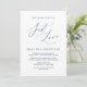 Elegantly announce your happily ever after with our modern romantic Navy Blue themed wedding elopement celebration invitation card, "Nothing Fancy, Just Love". Tailored for couples continuing their love story, this invitation strikes a perfect balance of sophistication and charm, setting the scene for an unforgettable event. Featuring a modern contemporary script design, it adds a touch of timeless grace to your special day. Designed by the talented TeeshaDerrick, this invitation is a stylish expression of your enduring love.