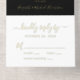 Elegant black elopement or private wedding announcement and casual reception all-in-one invitation that features "Nothing Fancy Just Love" showcased in simple lettering and a chic script with swashes, your marriage announcement and reception invitation, and a tear away RSVP response postcard, all rendered in your choice of genuine gold, silver or rose gold foil.