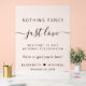 Chic minimalist frosted acrylic wedding welcome sign featuring "Nothing Fancy Just Love" in a blend of simple modern lettering and an elegant script with swashes, "We're so glad you're here" in classic serif typography, your first names joined together by a heart and your wedding date.