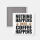 Nothing Happens Until Coffee Happens funny magnet. A great magnet for someone who needs caffeine before they start the day. Let everyone know that nothing is getting cooked until you had your coffee. A great magnet for a coffee addict.
