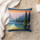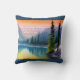 Artistic throw pillow features AI generated watercolor digital painting of a peaceful mountain lake with overlay of a profound and inspirational Zen quote: “When you realise nothing is lacking, the whole world belongs to you.” ~ Lao Tzu