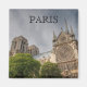 This is the facade of Notre Dame de Paris, a gothic cathedral in Paris, France. The beautiful architecture of this mediaeval church and the exterior of the stained glass windows are on display underneath a stormy sky filled with clouds. Notre Dame is also known as Our Lady of Paris. This photo showcases one of the most popular tourist attractions in Paris and one of the most visited European churches.