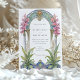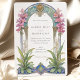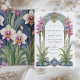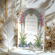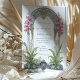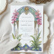 This luxurious wedding invitation captures the essence of Art Nouveau with its intricate floral design, featuring a stunning arch adorned with elegant orchids. The front of the invitation showcases beautifully detailed orchids in warm shades of peach, lavender, and blush pink, all set against a classic white background. The invitation is framed by flowing, organic lines and a rich botanical motif that exudes sophistication and grace. The back of the invitation continues the floral theme with a vibrant orchid garden set against a deep, midnight blue backdrop, creating a striking contrast that is both timeless and modern. Perfect for couples looking for a refined and elegant invitation that speaks to a love of nature and classic design.