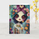 Nova meaning chaser of butterflies illustration, artwork greeting card from Ricaso - an illustration of a gothic girl with flowers and butterfly details, she has pink and teal hair