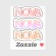 Nova name in neon lights. Three copies - one in a pink hue, one in a blend of yellow, pink and purple and one in golden yellow.
