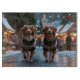 This festive design captures the joyful spirit of the holiday season, featuring an adorable dogs.Nestled in a winter wonderland, complete with a decorated Christmas tree, and beautifully wrapped presents. Snowflakes gently fall, adding a magical touch to the scene, while the vibrant colours of the holiday decorations create a warm and cheerful atmosphere.