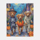Adorable Nova Scotia Duck Tolling Retrievers dressed in playful Halloween costumes carry pumpkin buckets while trick-or-treating under the moonlit sky. This festive design highlights the breed’s foxlike appearance, reddish-golden coat, and playful spirit, perfectly capturing the spooky yet fun atmosphere of Halloween night. A joyful celebration for dog lovers and Halloween fans alike.