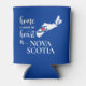 Nova Scotia home is where the heart is... in mixed cursive, serif and sans serif font with the silhouette of the Canadian province and a red heart overlay.