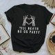 This 'till death do us party' bachelorette t shirt features an heart shaped skeleton hands and an edgy font design. Pair this shirt with the 'bride or die' shirt for the bride for a cohesive bachelorette look.