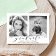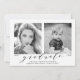 Our stylish "Now and Then" graduation photo announcements display your graduate's favourite senior photo (now) as well as a baby or toddler photo (then). Change the years below each photo to reflect the graduation year and birth year (or year photo was taken). The modern graduation announcements display "graduate" in an elegant script font with the graduate's name, school name, and class year below. The reverse side of the grad announcement features a soft mint green watercolor background. Add a photo or text to the back for a more personalised design!