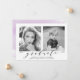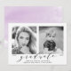 Our stylish "Now and Then" graduation photo announcements display your graduate's favorite senior photo (now) as well as a baby or toddler photo (then). Change the years below each photo to reflect the graduation year and birth year (or year photo was taken). The modern graduation announcements display "graduate" in an elegant script font with the graduate's name, school name, and class year below. The reverse side of the grad announcement features a soft purple watercolor background. Add a photo or text to the back for a more personalized design!