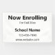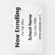 Now Enrolling is near the top of the banner. The second line says for Fall 20xx. The third line is in a bold font for the school name. The next line is for the school's phone number. The final line of text is for the school website. All text is black and can be edited or deleted. The banner is white.