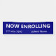 This now enrolling banner is navy blue. The text is white. It says now enrolling in a large font. Now enrolling is above additional text that you can edit to show a custom message such as your phone number and the school name.
