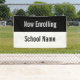 This Now Enrolling banner has a black stripe at the top. White display text is on the black stripe. The bottom stripe is white and has black text for the school name. All text can be edited or deleted.