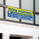 Your choice of noticeable colour scheme on this "now hiring" "help wanted" or "join our team" banner to hang in your business to get the attention of those actually looking for a job instead of sitting around collecting stimulus dough, personalised with your text.