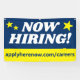 Your choice of noticeable colour scheme on this "now hiring" "help wanted" or "join our team" banner to hang in or outisde your business to get the attention of those actually looking for a job instead of sitting around collecting stimulus dough, personalised with your text.