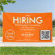 Attract new hires with ease with this fully customisable modern orange NOW HIRING full time and part time positions outdoor banner. Simple update your business logo, website qr code and company contact information.