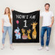 Now I am 1 year old 1st Birthday at the Zoo Fleece Blanket