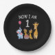 Now I am 1 year old 1st Birthday at the Zoo Paper Plate