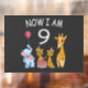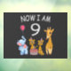 Happy 9th Birthday. Funny and lovely Kids Birthday design with a cute Elephant, two ferrets and a giraffe celebrating your birthday at the zoo.