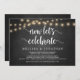 Now let's celebrate, Wedding Elopement Announcement / Invitation card, in Rustic farm chalkboard, String Lights design. This is perfect for your wedding reception and post-wedding celebration party. Add your details in matching font / lettering.