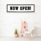 Say "now open" to customers on the occasion of your business opening. Bold black wording in a black frame.