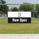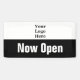 The top half of the banner is white. The bottom half is black. You can replace the display image that's at the top with the appropriate logo. At the bottom, there's white display text you can edit to show a custom message (Shown: Now Open).