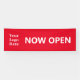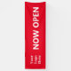 This NOW OPEN banner is bright red. This outdoor business banner has white text in all caps. A placeholder image is next to the the text. You can replace the image with your company logo. An outdoor banner is a simple and affordable way to market the opening of your new business. You can change the message on the banner if desired.