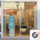 A modern teal blue business logo opening times vinyl window cling decal with classic typography in a minimalist style. The template can be easily updated with your company logo and business hours.