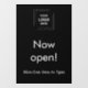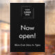 Welcome customers with style using this modern “Now Open” business hours window cling. Designed in bold black with space for your logo, it’s perfect for shops, cafes, salons, and offices. Durable and customisable, this cling makes your storefront look professional and inviting.