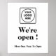 Announce your grand opening in style with this custom business logo design. Perfect for shops, offices, and events, this modern white layout allows your logo and opening hours to stand out. Clean, professional, and eye-catching—ideal for making a strong first impression.