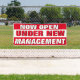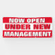 I have also done this Now Open Under New Management Small Business Banner in 2 sizes of window clings.