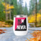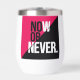 vibrant and modern typography design featuring the motivational phrase "Now or Never." The split colour scheme of hot pink and black emphasizes urgency and determination, making it perfect for apparel, posters, or accessories that inspire action and ambition.