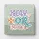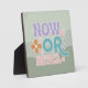 Now Or Never Inspirational Quote Teal Green Pastel Plaque