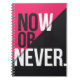 A vibrant and modern typography design featuring the motivational phrase "Now or Never." The split colour scheme of hot pink and black emphasizes urgency and determination, making it perfect for apparel, posters, or accessories that inspire action and ambition.