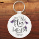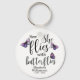 A beautiful butterfly memorial keychain. This simple quote design features the butterfly quote "Now she flies with butterflies". Personalise with a name and date.