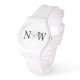 This is prettier in person. Well made and just snazzy...not to mention that it's a great reminder to stay present! I bought this for my college aged daughter for Christmas but like it so much I am ordering one for myself. At 1st I was a bit turned off by the silicone but it really is a nice bright white that compliments skin tone and lots of bracelets.