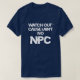 The graphic, with the acronym "NPC" (non-player character) at the end of a warning statement, conveys a clear message: "Be cautious, I'm not an NPC." (non-player character) .This warning is directed at those viewing the shirt, suggesting that others shouldn't expect a passive reaction or lack of response, as the person is ready to take action if something goes wrong. The image may reflect the determination and assertiveness of the person wearing the shirt, conveying the idea of active participation in managing their own experiences.
